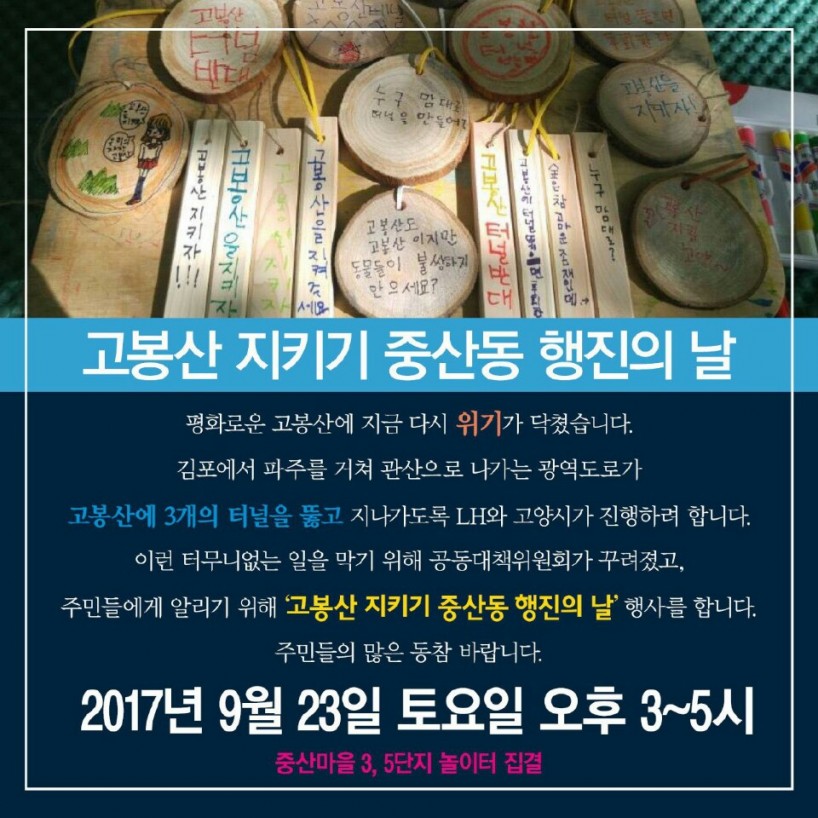 고봉산지키기 중산동행진 (09/23 ~ 09/23)